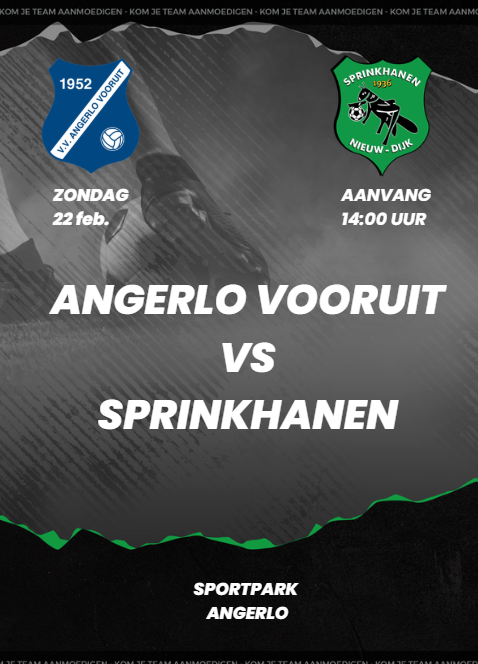 Zondag 14 december speelt Sprinkhanen thuis de inhaalwedstrijd thuis tegen Fc Bergh.