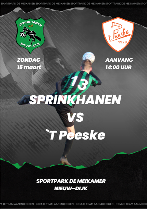 Zondag 30 november speelt Sprinkhanen thuis tegen Ajax Breedenbroek aanvang 14:00 uur.