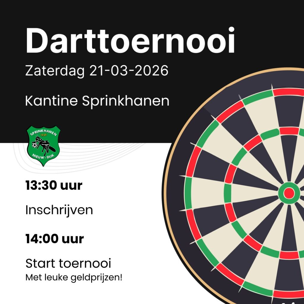 Darttoernooi 2026 zaterdag 21 maart