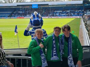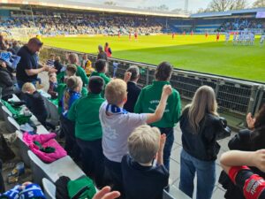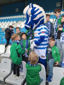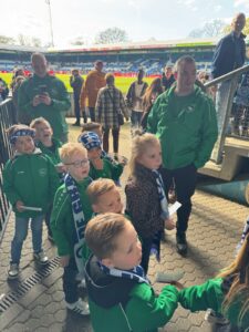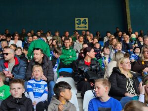 De kinderen zaten vol spanning op de tribune en genoten zichtbaar van de wedstrijd. Na afloop werd het nog extra bijzonder: ze mochten op de foto met Ibrahim El Kadiri en Guus!