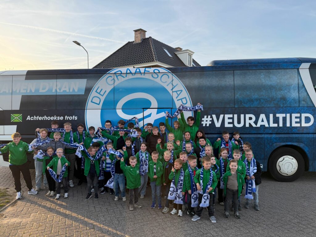 Sommige kids scoorden zelfs nog een handtekening. Als kers op de taart kreeg alle jeugd ook nog een mooie sjaal van De Graafschap als aandenken aan deze geweldige dag.
